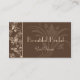 Denna visitkortdesign är säker att tilldra uppmärksamhet och hjälpa dig att stå ut i folkmassan. Bakgrunden är choklad - bruntet och där är ett härligt blom- grafiskt i champangekräm som ger det en elegant look. Perfekten för någon affär men speciellt utmärkt för brud- salong och att gifta sig att planera, att planera för händelse, att sköta om, nagelsalongen, brunnsorten, smycken, cosmetologisten, mode, skönhetkonsulenten eller någon tid skulle du likt ett elegantt handlag. Tillfoga din information, och det är klart att gå!
