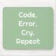 Perfect for programmers and engineers 💻 this sleek mouse pad features "Code. Error. Cry. Repeat" in bold white on a stylish Mint Green background ✨ Modern, refreshing, and relatable, a design that inspires every coding or engineering session 🎁 Ideal gift for anyone who loves programming, debugging, or all things tech 🖱️ Comfortable & durable, smooth surface for precise mouse movements built for daily use 💡 A witty and thoughtful gift for developers, engineers, and tech lovers alike.