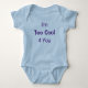 Lustigt blått biet för ett nyfött pojke med anpassningsbar ord "Jag är för coola 4 du" i trendig, snyggt typsnitt.