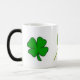 En ändrande mugg för färg med 2 klöver på den. Modellera beskrivningen: En riktigt unik mugg. När den är kall, är det precis en enkel svart mugg. När du tillfogar någon varm dryck (vatten, tea, kaffe, Etc.), kommer avbilda till liv i vibrerande färger. Handwash endast.