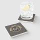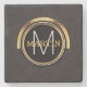 Tillfoga lyx och elegans till ditt hem med dessa stilfulla monogrammed stenunderlägg som presenterar ett klassikerguld, cirklar fauxmetall att inrama en personligmonogram som är initial i blekgrått och efternamn, i att matcha guld- tonbrev. På struktur för fauxsvartläder sök efter exklusiv stil. Perfekt för traditionell stilhemdekor. Gör elegant, svart och guld- bröllopgåvor för personlig för bruden och brudgummen eller en flott inflyttnings- gåva. Ändra stilen, storleksanpassa, eller färg av monogramsna som väl! Vi har mer monogrammed underlägg i vår Zazzle.com/angela65* att shoppa såväl som matcha den svart dekoren för läderlookhemmet.