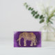 Guld- elefant för härlig faux för hand plockade stam- på en purpurfärgad penseldragbakgrund.