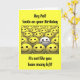 En ledsen ansikte i en folkmassa lycklig som leker ansikte. Smilt på din födelsedag!
