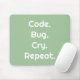 Perfect for programmers and engineers 💻 this sleek mouse pad features "Code. Bug. Cry. Repeat." in bold white on a stylish Mint Green background ✨ Modern, refreshing, and relatable, a design that inspires every coding or engineering session 🎁 Ideal gift for anyone who loves programming, debugging, or all things tech 🖱️ Comfortable & durable, smooth surface for precise mouse movements built for daily use 💡 A witty and thoughtful gift for developers, engineers, and tech lovers alike.