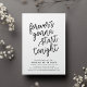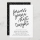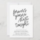 Behållan party går! Vår moderna och avslappnad bröllop efter festinbjudningar i chic, svart och vitt, "kommer att börja ikväll", i svart manustypografi med dina party-detaljer under. Kort som går tillbaka till en festlig svart och vit konetti mönster.