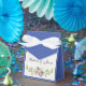 Denna bröllopsdesign har en delikat blomsterkant på en vit präglad pappersbakgrund. Den romantiska designen är perfekt för ett vår- eller sommarbröllop, och den subtila användningen av blommor ger en touch av elegans till det övergripande utseendet.