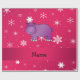 Skapa din egna anpassningsbarpersonlig med precis tillfogar ditt namn (efternamn), monogramen, hälsningen eller initialer eller flodhästen för gullig tecknad för ordstäv den purpurfärgade med rosa snöflingor och pricker julmönsterbakgrund, och rosor görar randig. Gulliga idéer för flodhästjulgåva.