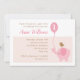 Gullig 1st födelsedaginbjudan för flickor, med den hållande ballongen för elefant & gullig brun pippi.