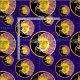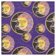 Virvlade runt sol- förmörkelseTYG för vattenfärgen med den guld- ljusa solen & den skimrande månen med dansstjärnor över den mörka purpurfärgade bakgrunden. Detta mönster var designat för en internationell förmörkelsemönstertävling var det förlade i de bästa 25na ut ur hundratals tillträden.