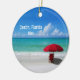 Om du har rest till Destin, Florida, detta år, ska du önskar att minnas att resan med denna unika julminnessakprydnad som presenterar detta vibrerande fotografiskt för att avbilda av turkosblåtten bevattnar, vitsandstranden, och ett röd strandparaply och stol och en lantlig beachy typografi. Lätt att skräddarsy med ditt datera av reser på bekläda (som kan ändras till ett foto av ditt eget, om önskat) och ditt egna foto på baksidaen. Foto av stranden och paraplyet och design© vid TK Goforth och undertecknat av konstnären, all reserverad rättigheter. Placemarker foto av Ebby Stratton. Denna unika julprydnad är en älskvärd gåva och minnessak för handelsresanden, som älskar Destin, Florida eller stranden, eller någon som önskar att fira minnet av deras egna underbara resa. Andra produkter med denna design kan finnas i min Destin, den Florida samlingen i mitt Zazzle lager: