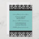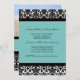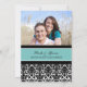 Förlovningsfestfotoinbjudningar i elegant turkos slösar, det blom- damastast mönster för den svartvita klassikern. Fullständigt specificerar anpassadet med din förlovningsfest och ditt egna foto. Också tillgängligt i en lång räcka av att matcha bröllopprodukter.