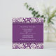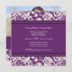 Förlovningsfestfotoinbjudningar i mörka lilor för elegant aubergine och blom- damastast mönster för kräm- benvit klassiker. Fullständigt specificerar anpassadet med din förlovningsfest och ditt egna foto. Också tillgängligt i en lång räcka av att matcha bröllopprodukter.