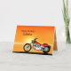 En motorcykel som liknar en Harley som står vid havet med en gloriös orange solnedgång. Ett underbarare kort för alla som gillar cyklar och motorcyklar.Se hela korten för åldrar och relationer i min butik. Alla teckningar med upphovsrätt Norma Cornes