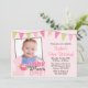 Themed 1st födelsedagsfest inbjudan för gullig uggla. En söt design i rosor, grönt och bruntet för en första födelsedag för liten flicka. Tillfoga ett foto för att göra denna inbjudansakkunnig. Några diagram vid www.jwillustrations.com