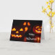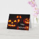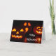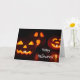 Något att säga "happy halloween för detta Halloween hälsningkort!", på bekläda och "hoppas dig har en Spooktacular dag!", på insidan. Täcka avbildar är av tre glödande lyktor för pumpajacko.