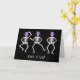 Starta att dansa med dessa skelett med detta skelett- happy halloweenhälsningkort. Tre skelett dansar en pimpel på en svart bakgrund på bekläda av kortet med ord "sparkar upp den". Ord på bekläda och på insidan kan skräddarsy till din egna ord. Ett singeldansskelett är inre kortet. Den räcka målade original- konsten presenterar dansskelett med den purpurfärgade top hat på deras döskallar och är i färgerna som är svartvita med lilor. Kontrollera för min andra produkter med denna konst för goulish produkter för Halloween inklusive inbjudningar, hälsningkort, utslagsplatsskjortor, elektronisk cases och mer. Fullständigt anpassade för monogrammärkning. Den original- konsten är från Phyllis Dobbs som önskar dig en lyckliga och demoniska Halloween.