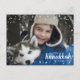Gulligt och roligt, är denna helgdagvykort perfekten långt som överför säsong hälsningar till vänner och familjen. Moln för särdragblåttvattenfärg med vitsnö och bokeh. Ändra fotomallen till ditt eget. Bekläda och baksidaen har text som kan ändras till passformen din efternamn och returadress.