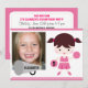 Du kan tillfoga ditt barns foto och allt henne information om partyet till dessa gulliga och färgrika cheerleading temat inbjudningar för födelsedagsfesten 5x7", innan du beställer! Presenterar en hejaklacksledare med brunetthår och ett rosa enhetligt, en megafon med ditt barns namn och henne åldern på en pompom!