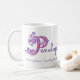 Namn för hand plockadebrev P och menande mugg. Nätt hjärta- och blommahuvudstad P klottrade den typografiska designen som presenterar hjärtor och blommor och den klyftiga lojala vävaren för ordPenelope A. Riva upp sanning med kärlek. Unik konst och design för © av Sarah Trett. www.sarahtrett.com för www.mylittleeden.com på zazzle