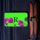 Monogrammed märka med sina initialer, och också personligt specificerar den något liknandenamn, adressen, telefonnummer och e-posten som du kan redigera. Designat med nätt ljusa purpurfärgade blom- designer i fast bakgrund för neongröntfärg, kan du ändra färgen, om du önskar.