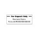 Ett checkgodkännande från frimärke kan hjälpa dig att få ditt företags bankinsättningar till rätt konto. All text kan redigeras eller tas bort. Endast för insättning finns ett fet teckensnitt nära överkanten. Den andra textraden gäller ert företag namn. Den sista textraden säger Konto# och har även siffror att ändra till ditt bankkontonummer.