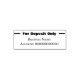 Ett checkgodkännande från frimärke kan hjälpa dig att få ditt företags bankinsättningar till rätt konto. All text kan redigeras eller tas bort. Endast för insättning finns ett fet teckensnitt nära överkanten. Den andra textraden gäller ert företag namn. Den sista textraden har siffror att ändra till ditt bankkontonummer.