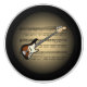 Elektrisk gitarr~ på 3-D guld- ~ för bakgrund för svart för ~ för jordklot~-notblad