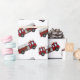 Skapa din egna anpassningsbar som precis personifieras, tillfogar namn, monogramen, eller initialer eller ordstävet på din gulliga bakgrund för tecknadfiretruckmönster och svart röda rand. Gullig för barn, pojkar och brandmän för brandmangåvaidéer.