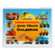 12 underbara stora lastbilar på denna färgrika beställnings- för barn för konstruktionslastbilkalender! Den Paul Sticklands firetrucken, bulldozer, cementerar blandaren, traktoren, grävaren, grävskopaillustrationer. Efter du har använt denna underbara kalender för barnkonstruktionslastbilen, kunde du inrama alla 12 bilderna av lastbilar. Underbar för en themed partygåva eller favör för lastbil och perfekt för ett themed sovrum för lastbil. Mer beställnings- stor lastbilgåvaför barn från TruckStore på Zazzle.