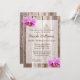 En themed inbjudningskort för möhippan för land som presenterar ladugårdträ och rosaorchiden, blommar. Skräddarsy lätt med ditt party specificerar!