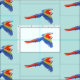 Original- scharlakansröd macawpapegojadesign av konstnären och formgivare Carolyn McFann på högkvalitativt borstat bomullstyg. Underbar för att sy och att vaddera för tropiska teman och fågelfläktar