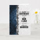 Blåpaisley på ena sidan med en gräns av silver-knappar och en mjuk, avbländad silver som samordnar paisley på högerna ge detta födelseattest för din make en manlig känsla, och han kärlekar det sentimentala och hjärtliga budskapet.