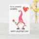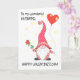 En hälsningskort för make på Alla hjärtans dag i roligt, med en söt liten gnom, klädd i rött, med en enda röd ros i ena handen och en hjärtformad röd ballong i andra handen. Denna populära, skandinaviska-stil-gnom är liten och knubbig, med ett stort vitt skägg som når marken och en hög hatt som dras ner över hans ögon så att allt vi kan se av hans ansikte är hans stora, rosa näsa. Det finns ett dekorativt hjärta som hänger från hatten och hans guld-färgad-hatband har rött "X" för kyssar överallt. Hälsning, med en svart roligt, är "Till mitt underbara MAKE, HAPPY VALENTINS DAG!" Bakgrunden är vit med en spridning av små, blek guld-färgad hjärtan. Det inre meddelandet är bara ett förslag och du kan enkelt ändra det eller ta bort det helt om du tittar ett "tomt inuti"-kort.