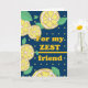 För min bästa vän, hälsningskort för vänskap. Citronskivor och löv på en mörk blått bakgrund med gult guld-bokstäver. Anpassa insidan som du vill. Art, bild och versell copyright © Shoaff Ballanger Studios, 2022.