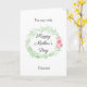 Ett grönt vattenfärgslager och rosa blommor söt Mors dag kort för fru, som du lätt kan anpassa framsidan med hennes namn. Det inre budskapet på det här söt Mors dag-gudmasterkortet läser ett hjärtligt budskap som du också kan personalisera om du vill. Baksidan har samma grönt vattenfärgslager med rosa blommor med ställe för att du ska kunna lägga på året. En söt Mors dag-keepy för henne.