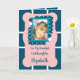 Grattis på födelsedagen guddotter. Blått och rosa med namn, foto och stjärnor.