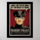"Du verkar ha haft lite för mycket för tänka!" säger Mustachioed THINKPOL-officer när han går upp till Winston med en stark röst. Winston måste ha glömt bort att gömma avskyn och avskyn i ögon, för den stora mannen i svart flyttat ännu närmare, hans ögon gömmer bakom de speglade, satelliterade solglasögonen. "Har du något att säga, herr?" Hans röst hotar nu. "Ingen herr! Nej." Winston skakar nervosivt och avhåller ögon så mycket som möjligt. Bra, då. Låt oss gå vidare." Polisen lugnar lite till en tråkig professionell. "Kom ihåg, slutna sinnen stoppar tankebrott. Låt oss gå vidare." Illustration av Dan McCall. Inspirerad av George Orwells roman Nitton 84.