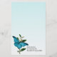 Stationär vit för nätt look för turkosblåttombre med vintagekonstverk av en älskvärd turkosblåttfjäril på en blommastem som dekorerar den lämnade grunden. Personifiera den svart texten, på grunden av papperet, för att läsa vad du önskar. Ursnygg brevpapper för dig eller som en trevlig lite gåvaidé till henne.