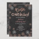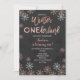 Övervintra ONEderland den första födelsedaginbjudan med vitbakgrund och snöflingorperfekten för vinterfödelsedag.