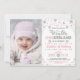 Gullig vinter-themed första födelsedaginbjudan som presenterar rosor och silversnöflingor, fauxglitterstjärnor och konfettistänk