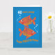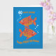 Ett roligt 40th födelsedagkort för en Piscean, med orangen för briljant två och guld- gult fiskar på en ljus blåttbakgrund, från enmålad papper collage av Judy Adamson. Om du inte ser åldern som du behöver, kan du gilla för att veta att det finns en anpassningsbar beklär version av detta födelsedagkort.