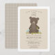 En söt bebisbjörn gör en förtjusande partyinbjudan till något barns födelsedag! "Är vår lite unge" perfekt för ett themed party för skogsmark eller för baby djur. Denna gulliga ungeillustration är ett original vid Kat Parrella - inte ser han lycklig i hans hem- leka för skog bland champinjonerna och grönskan?
