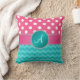 För polka dotsturkos för Monogram rosa gnistra för Kudde