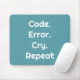 Perfect for programmers and engineers 💻 this sleek mouse pad features "Code. Error. Cry. Repeat" in bold white on a stylish Teal Blue background ✨