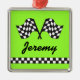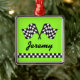 Den roliga tävlings- flaggor planlägger med personlignamn kommer på en högvärdigt silver inramad prydnad för den tävlings- entusiasten! Ändra precis namn med designverktyg för att göra en beställnings- tävling att samla flaggagåvaprydnaden. Ändra bakgrundsfärgen för, om du gillar. Lagerföra bilraceren, samlar älskare för smutscykelraceren.