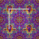Sju pekade kaleidoscopic design med ljusa lilor och intensiva regnbågefärger i ändlösa cirkulärdesigner som ser likt en elektrisk blomma med glödande franser för regnbågen längs petalsna. Invecklade designer flödar oändligt.