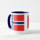 för Ringermugg för vit 11ox/blåttnorge & flagga Mugg