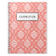 För rosa damastast mönster vitklassiker för korall anteckningsbok med spiral