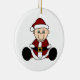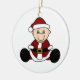 En iklädd bebis en Santa kostym och ett strumpalock på en prydnad som du kan lätt skräddarsy med din egna text, innan du beställer.