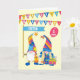 Ett roligt födelsedagskort för en syster som du kan anpassa med hennes ålder. På framsidan finns två söta gnomer, den ena med en banderoll som säger "SISTER" och den andra med en röd ballong där du kan lägga till din systers ålder. gnomerna baseras på den skandinaviska folklorisontens "tomte", hanen med ett långt vitt skägg och honan med tjocka blonda flätor eller braider. De har båda mycket höga hattar som täcker deras ögon, de har stora näsor och de bär varsin en presentlåda samt banderoll och ballong. "Grattis på födelsedagen" är skrivet i vitt brev på den färgstarka buntningen överst och färg är en mycket blek, ljust gult. Det inre meddelandet är bara ett förslag och du kan enkelt ändra det eller ta bort det om du vill.